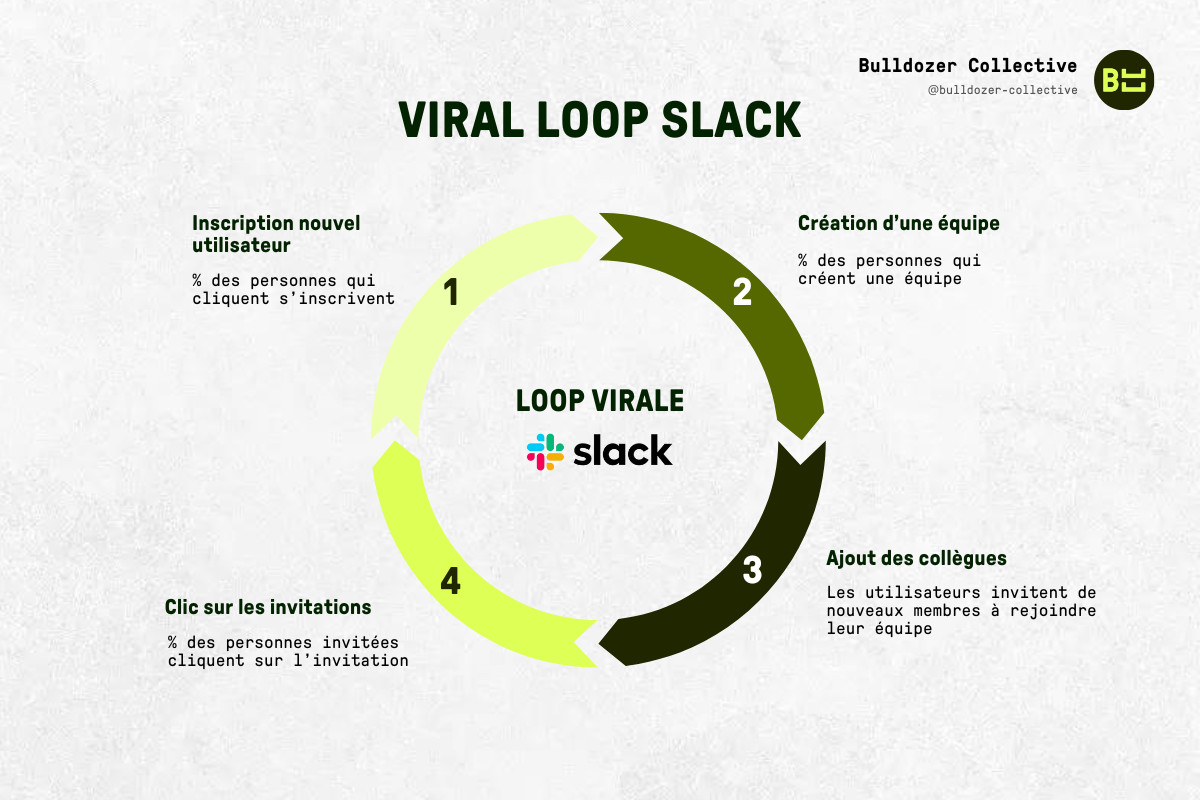 Slack (freemium viral par équipes), Dropbox (referral produit-natif : +3900% en 15 mois), Figma (collaboration temps réel comme acquisition), Notion (partage de pages comme boucle virale), HubSpot (CRM gratuit en entrée de gamme). Tous partagent un TtV inférieur à 5 minutes.
