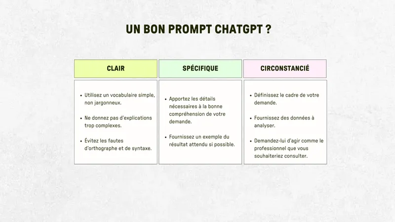 Non. Un prompt doit être conçu avec une intention stratégique, inclure les bons mots-clés, définir clairement la structure attendue et préciser le ton ou le format souhaité. Sans ces éléments, les résultats peuvent être vagues ou mal alignés avec les exigences des moteurs de recherche.