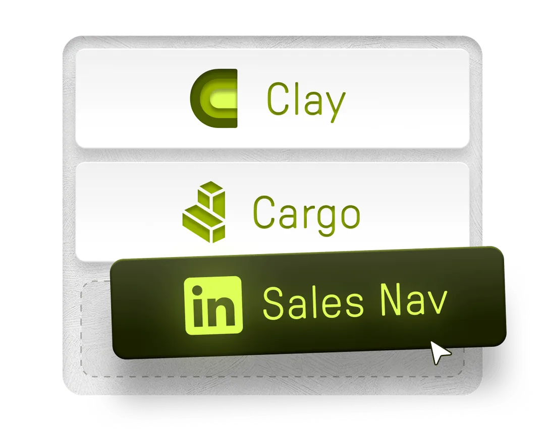 Nos experts utilisent notre OutboundMachine et notre AccountEngine qui viennent s’intégrer avec les meilleures technologies du marché comme Linkedin Sales Navigator, Cargo, Phantom Buster, et d'autres plateformes de prospection, pour mettre en place des stratégies performantes tout en vous offrant des résultats encore plus précis et parfaitement alignés avec vos objectifs.