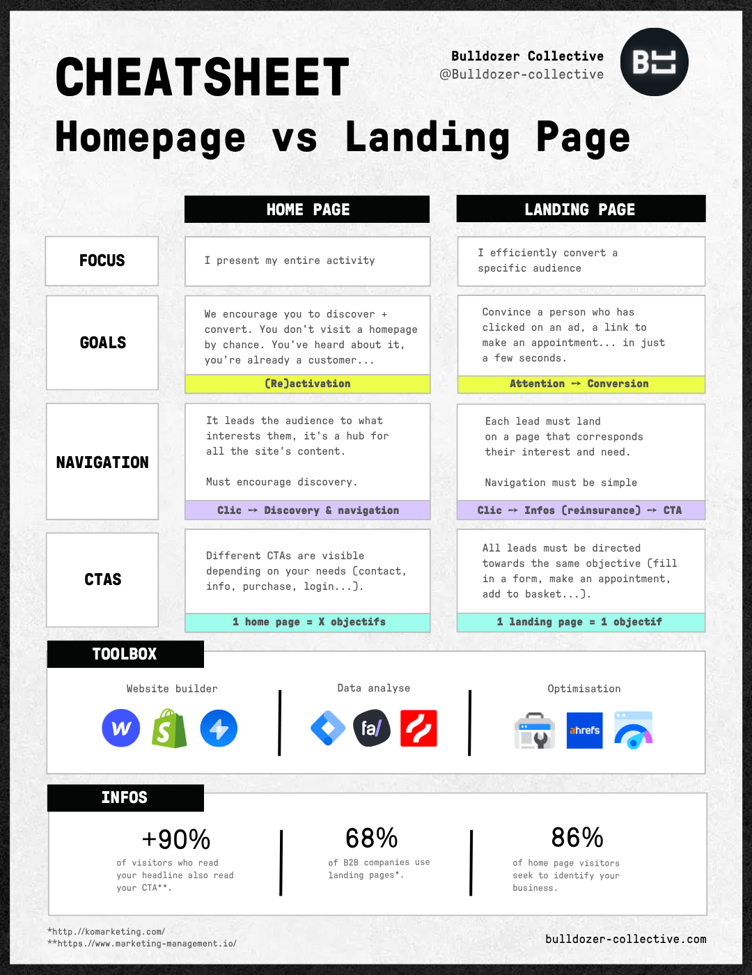 Practical guide distinguishing the specific objectives of each type of page. Highlights the fundamental differences in terms of conversion, navigation, and use of CTAs to maximize the effectiveness of your web pages.