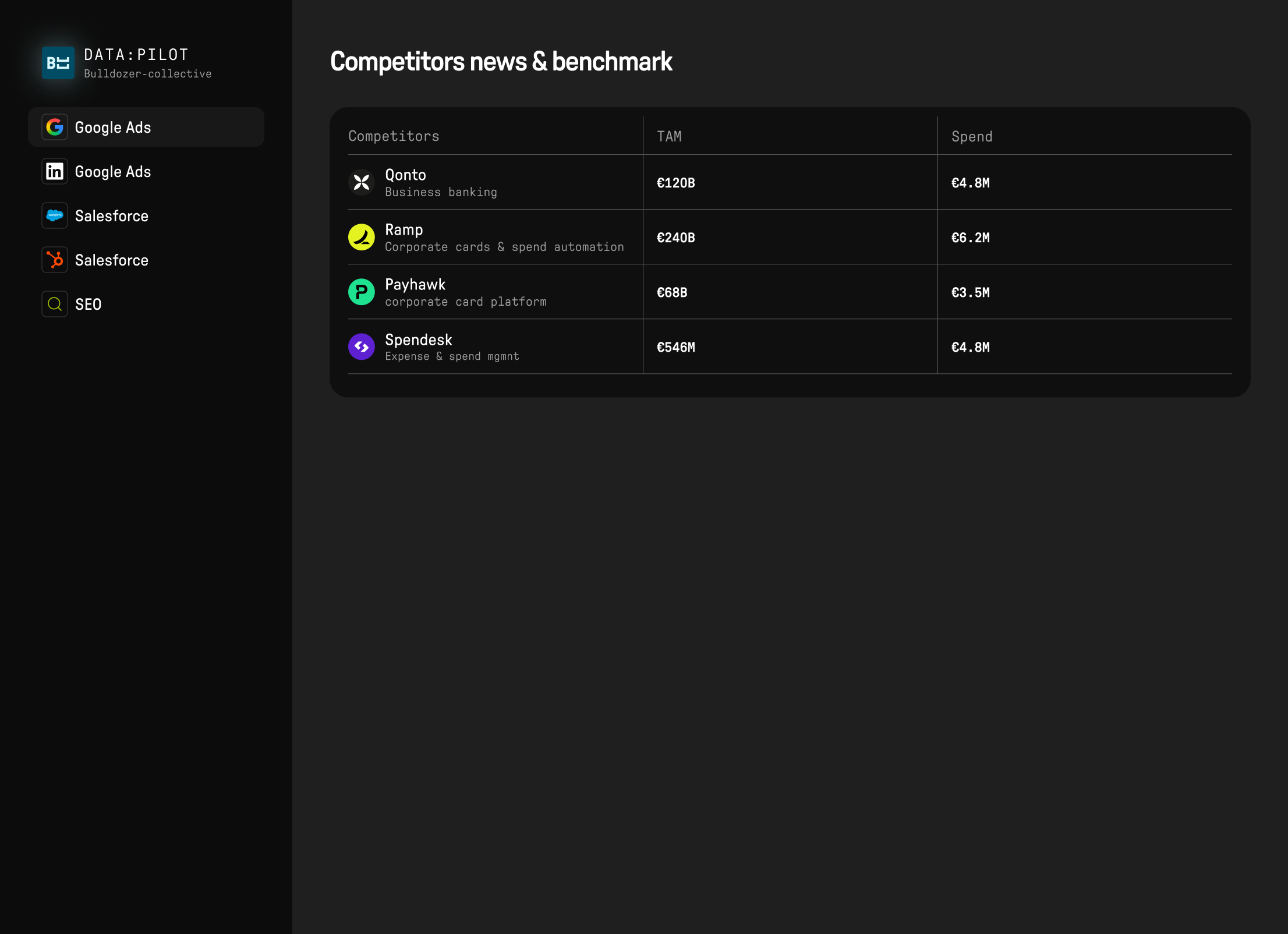 Forecast your pipeline, track your competitors' moves in real-time, and walk into board meetings with numbers the CFO respects. Your CFO has planning tools. Now marketing does too.