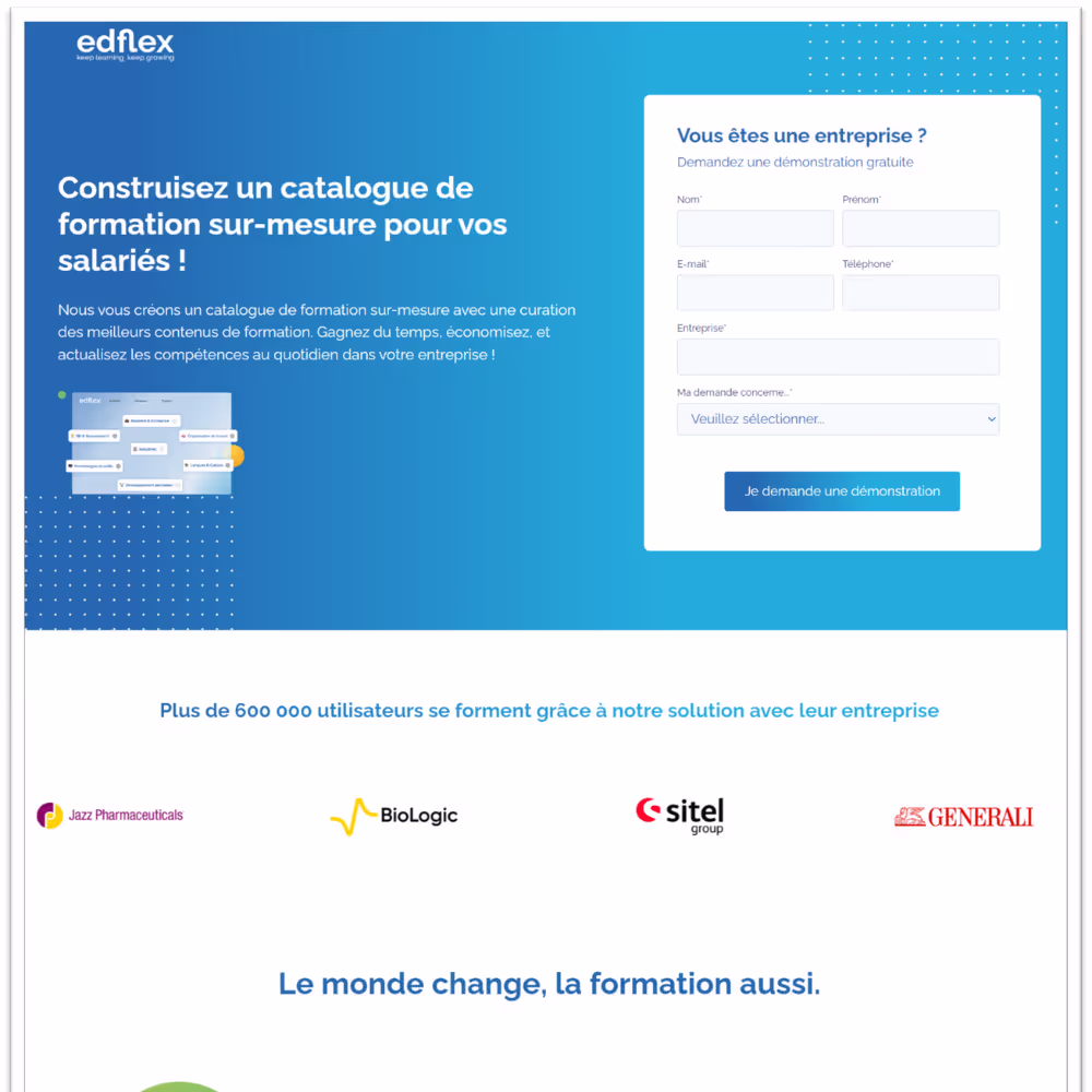 Edflex est une plateforme e-learning en pleine phase d'hyper-croissance, ayant récemment levé 5 millions d'euros pour soutenir son expansion en 2021. Avec des objectifs ambitieux à atteindre, l'entreprise cherche à associer la diversification des canaux d’acquisition et le séquençage des étapes du funnel d’acquisition avec les défis de structuration d'équipe.